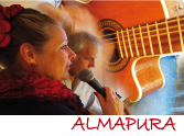 Titelliste von Almapura (Auswahl) MEDITERRANE HITS ♪ Ma~nana /Sólo para tí (Álvaro Soler) ♪ Robarte un beso / Duele el corazón / (Enrique Iglesias) ♪ La camisa negra (Juanes) ♪ Más que nada ♪ Ma~nana de carnaval ♪ ♪ Lagrimas negras ♪ Corazón salvaje ♪ Quizás, quizás ♪ Quién será ♪ Bésame mucho ♪ Munequita linda ♪ Amapola ♪ Perfidia ♪ La soledad ♪ La historia de un amor ♪ Aserejé (Las Ketchup) ♪ Je veux (Zas) ♪ Gracias a la vida / Alfonsina y el mar / Ay, este azul / La cigarra / Será posible el sur … (Mercedes Sosa) ♪ Volare (Gipsy Kings) ♪ Procuro olvidarte / SOS (Falete) ….. sowie international bekannte Titel in spanischer Sprache: Killing me softly / My way / Ohne Dich schlaf ich heut‘ Nacht nicht ein / I will survive ….. Hörproben auf Youtube: https://www.youtube.com/watch?v=zTMKkwlyHU4 https://www.youtube.com/watch?v=8mbQXQ-6xTA&list=RD8mbQXQ-6xTA und Außenkonzert: https://www.youtube.com/watch?v=BCeuxsO1KFU